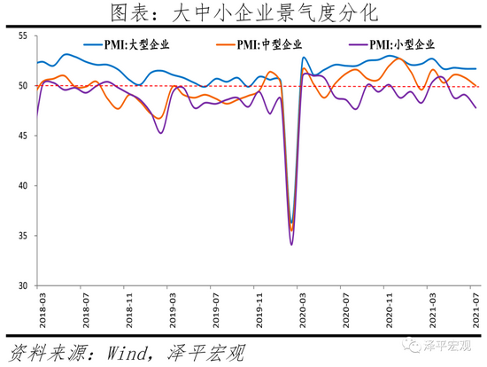当前应高度重视经济K型复苏现象:1)大中小企业冰火两重天,小微企业生存环境恶化。7月大、中、小型企业PMI分别为51.7%、50.0%和47.8%。2)上游成本上涨挤压中下游制造业。1-6月采掘业、上、中、下游制造业利润两年复合增长率分别为17.4%、30.1%、20.3%和3.4%。3)无就业复苏特征明显。制造业和非制造业从业人员指数仍处于临界值以下。16-24岁城镇的青年调查失业率为15.4%,比上个月上升了1.6个百分点,其中,20-24岁的大专及以上人员失业率更高。4)居民收入和财富差距拉大,穷人通缩、富人通胀。上半年,居民人均可支配收入两年平均增长7.4%,两年平均实际增长5.2%,低于往年同期水平。
