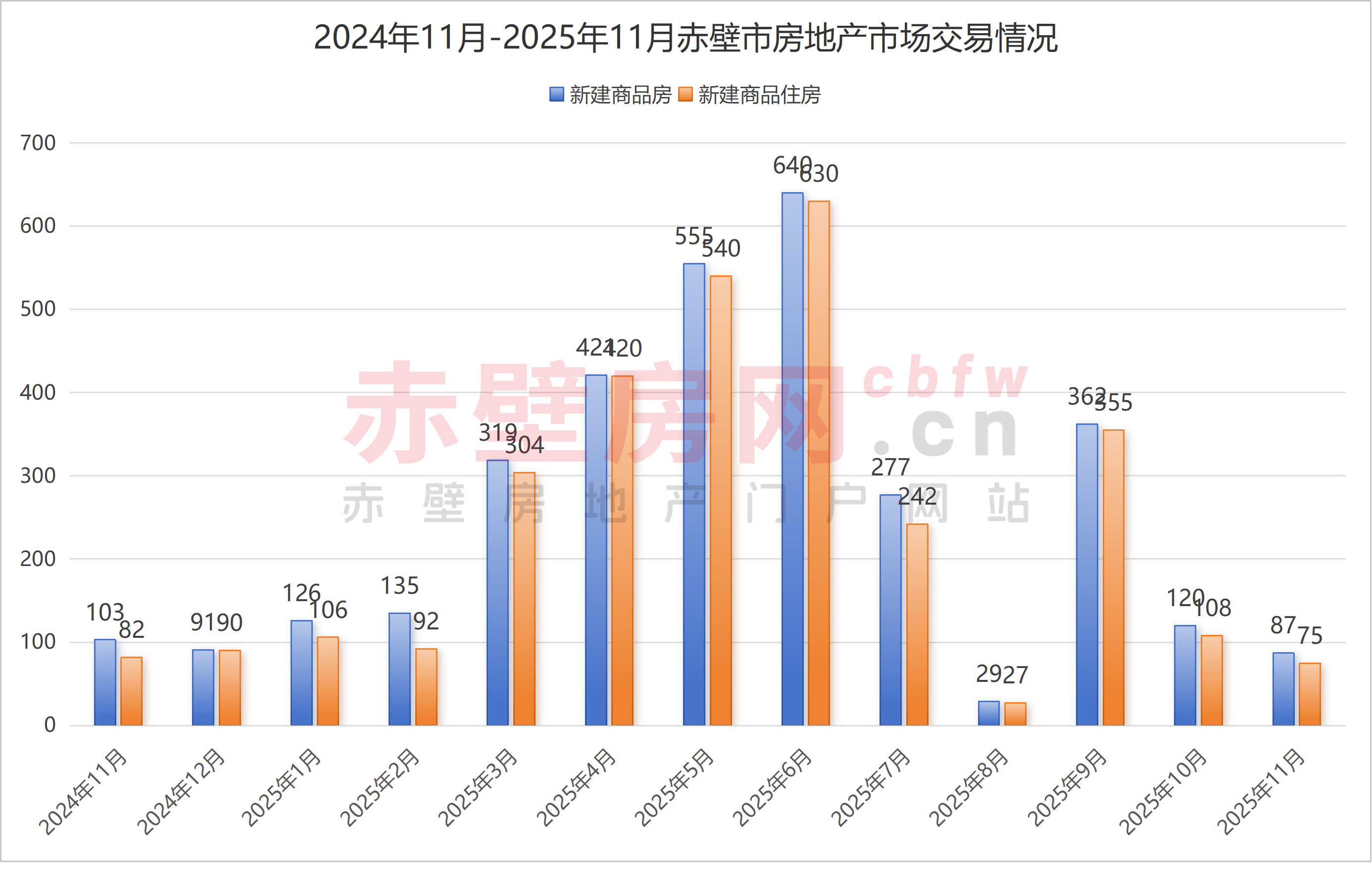 新建商品房销售87套,销售面积1.08万平方米,环比增长-21.74%,同比增加4.85%(2024年11月份1.03万㎡);其中,新建商品住房销售75套,销售面积0.95万平方米,环比增长-26.35%,同比增长1.06%(2024年11月0.94万㎡)。