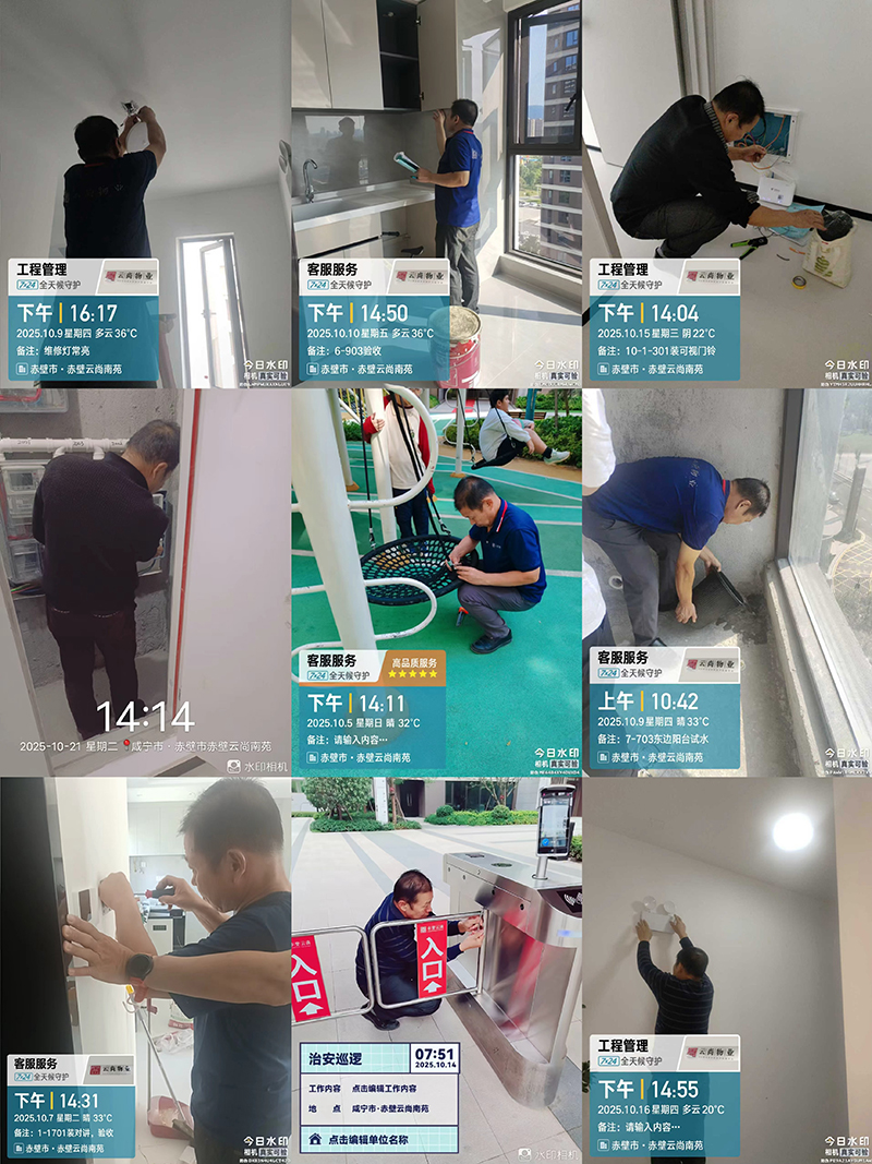 我们的工程团队每天都在忙碌着,无论是修理灯具、检查门窗,还是维护电梯和消防设施,他们都以高度的责任感和专业技能,确保小区的每一个角落都能得到妥善的维护。正如您所见,我们的工程师们在高温下依然坚守岗位,他们的辛勤工作只为给业主们提供一个安心的居住环境。