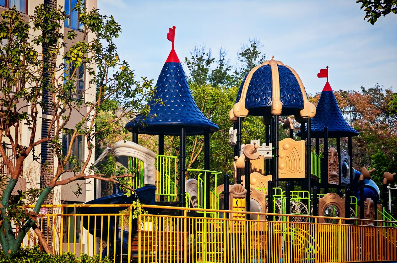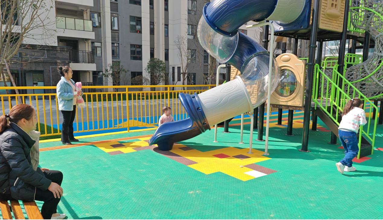 社区内的儿童乐园滑梯、攀爬架在暖阳下闪闪发光,镀上一层暖金,成为“家门口上学” 回家的孩子们探索、释放天性的快乐天地;