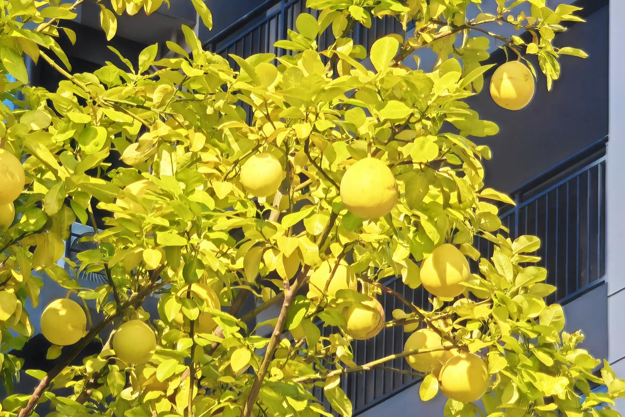 柚子树的枝头挂满饱满果实,金灿灿的模样格外抢眼,既装点了园林,更藏着丰收的烟火气。