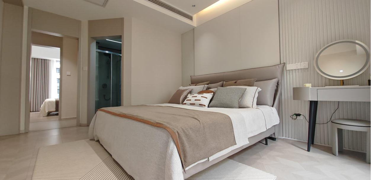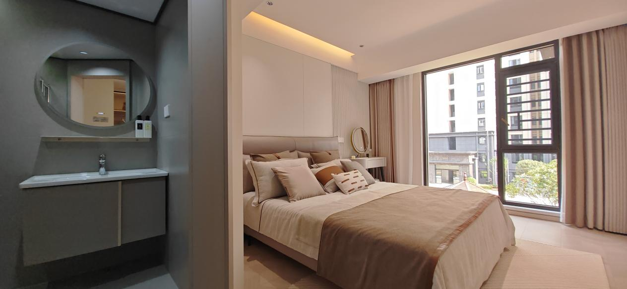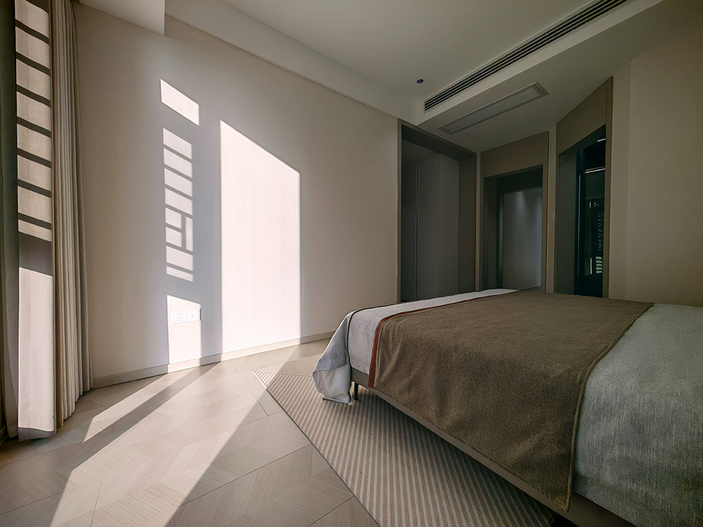 主卧套房设计,给太太一份私享礼遇:独立卫浴、步入式衣帽间规划,让日常更衣梳妆从容有序,于一隅安放优雅与宁静。