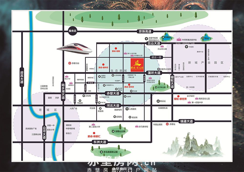 鹏成·状元府营销中心地址:蒲圻大道与周瑜路交汇处西北角(实验外国语学校斜对面)