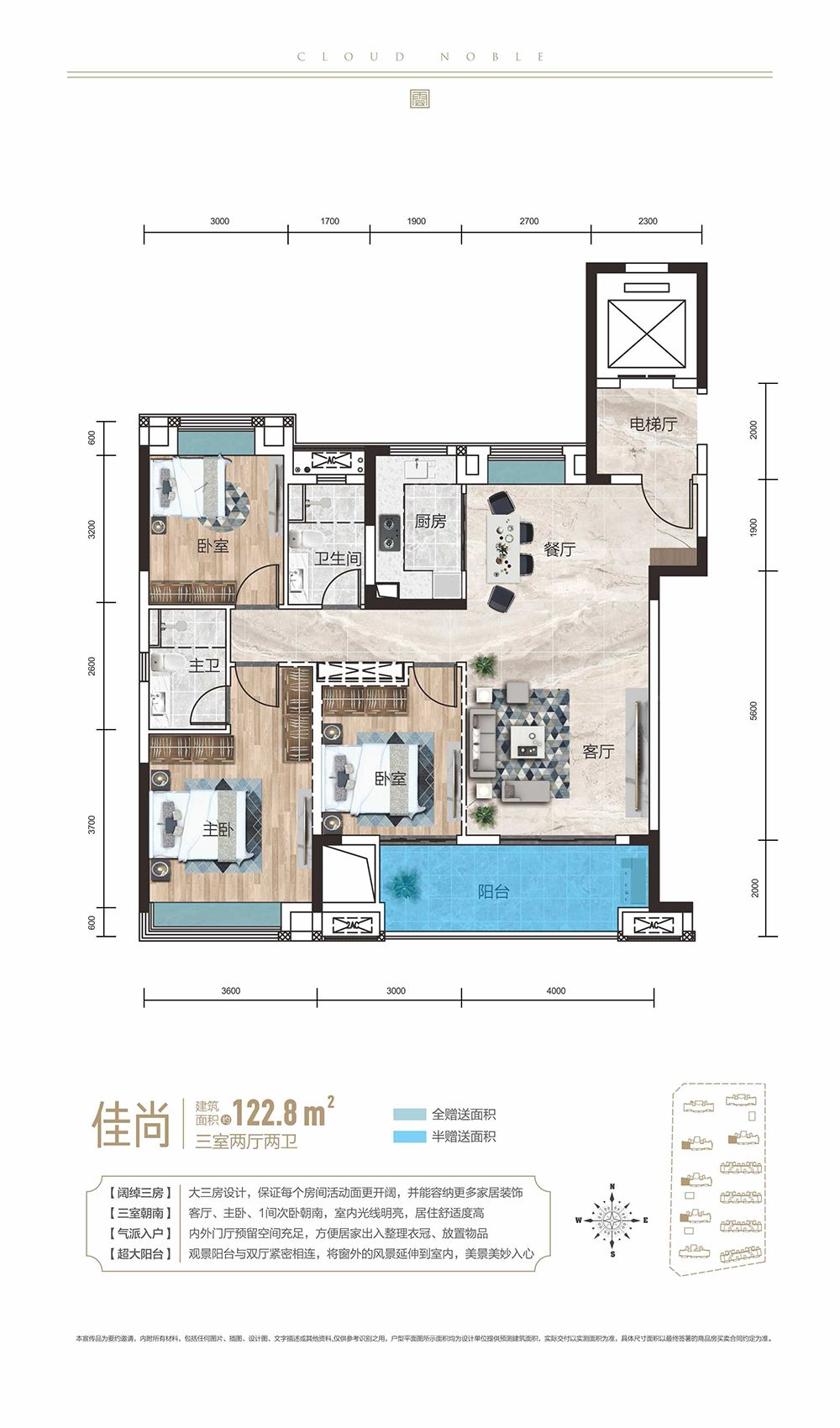 三面宽朝南:客厅+双卧朝南,日照充足。