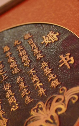 金灿灿的婚书,寓意“金玉良缘、一生相守”。
