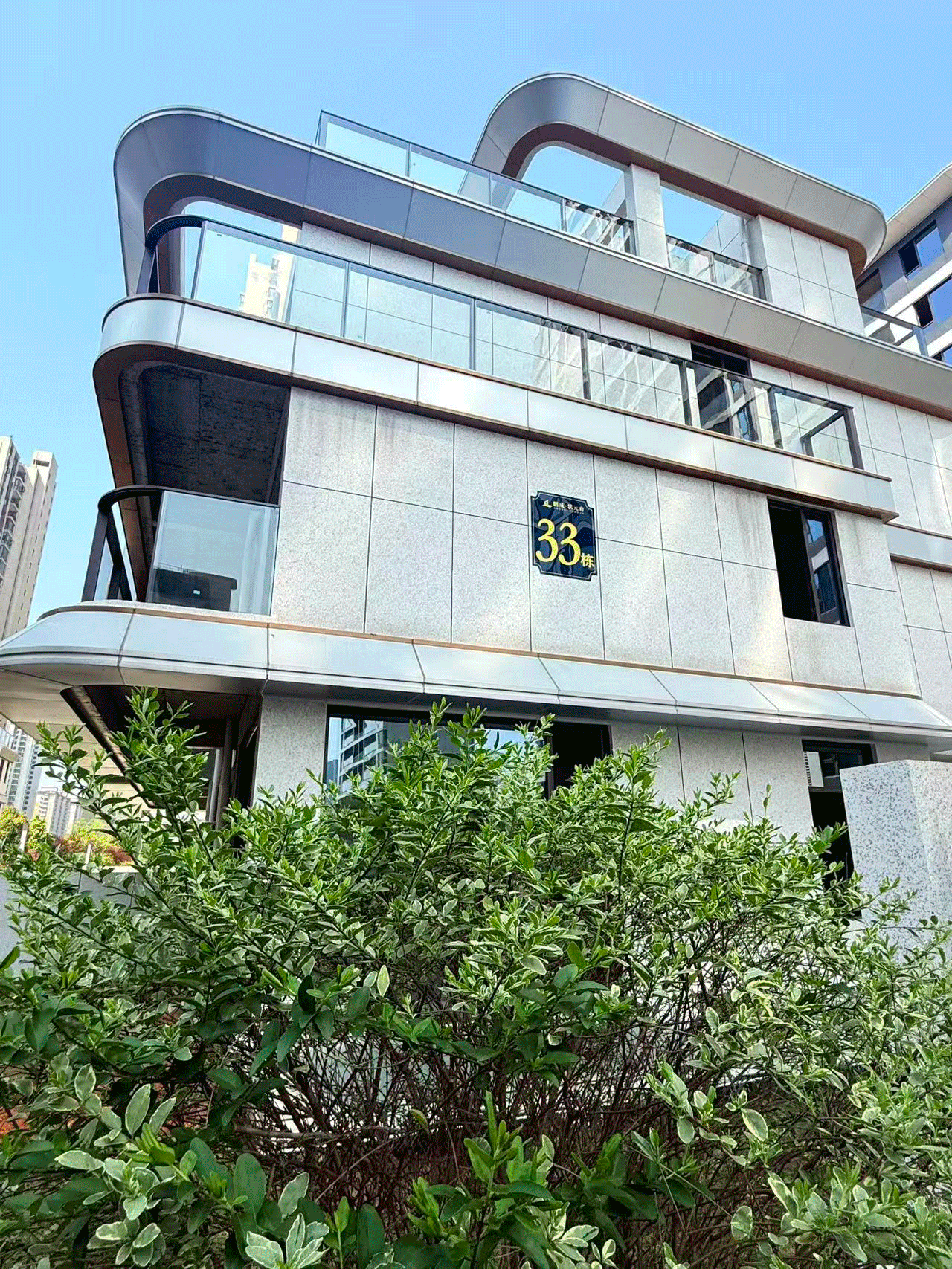 你见过银白铝板+香槟金线条的房子吗? 流线型外立面,像游艇破浪,站在那儿就是地标。