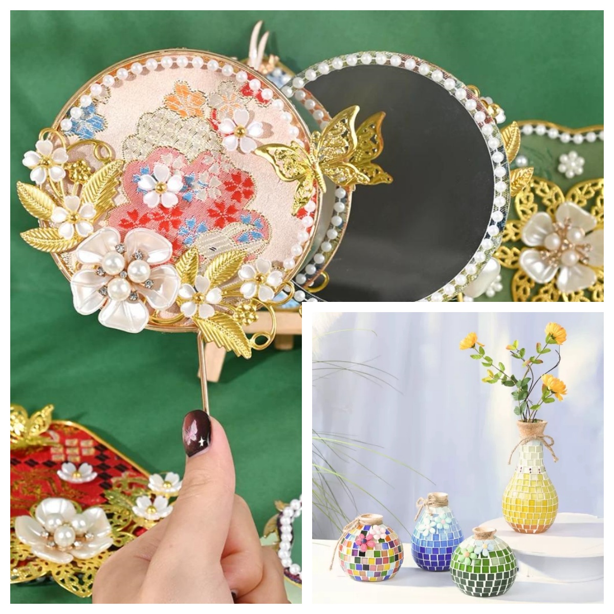 织锦国风团扇 & 马赛克花瓶:喜欢安静手工的,可以做一把古风扇子,或者贴一个独一无二的花瓶,带回家就是最好的装饰。