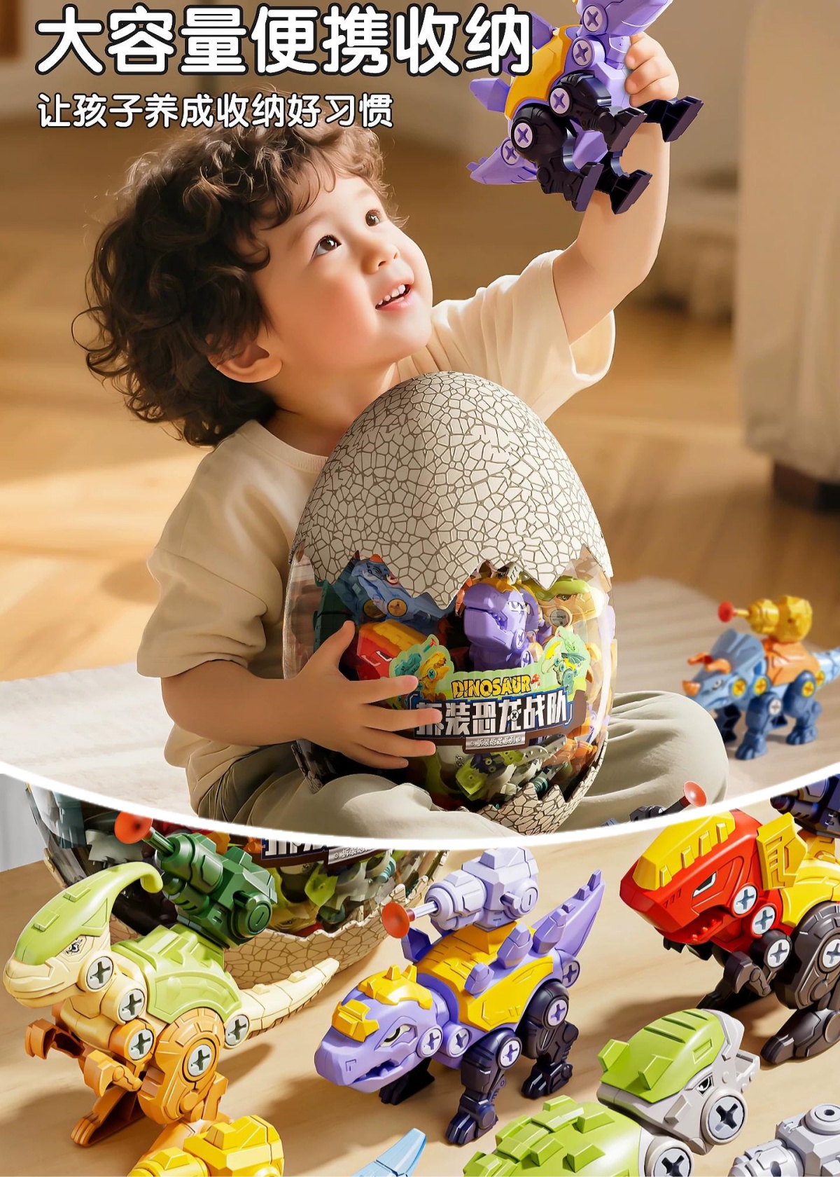 恐龙玩具拼装(3-6岁):大块零件,安全又好玩,拼完还能带回家当“守门神兽”。